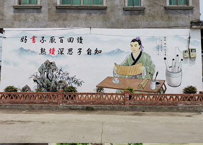 溫州市墨客墻繪藝術(shù)有限公司主要從事有個性有創(chuàng)意的家居裝飾墻繪、幼兒園卡通彩繪、KTV酒吧主題墻繪、3D立體墻繪、習哥彭姐文化大革命的城鄉(xiāng)文化宣傳墻繪等,當然還有我們獨歩武林的高墻墻繪藝術(shù)!畫高墻有時一個頭像就有兩米,不僅僅是大了型不好把握,一般習慣在陸地作戰(zhàn)的繪畫者往往上去后會讓你唱起一首歌:“三月里的小雨,淅瀝瀝瀝......瀝瀝……淅瀝瀝瀝下個不?!本褪谴魃夏虿粷?,他們也會在上面演示帕金森。我們施工時下面觀看的人如少女初戀般心跳,欣賞的人似紂王品酒觀妲己跳舞一樣陶醉。連村中惡犬也為我們搖尾吶喊:“……墨客墻繪……神勇無畏!